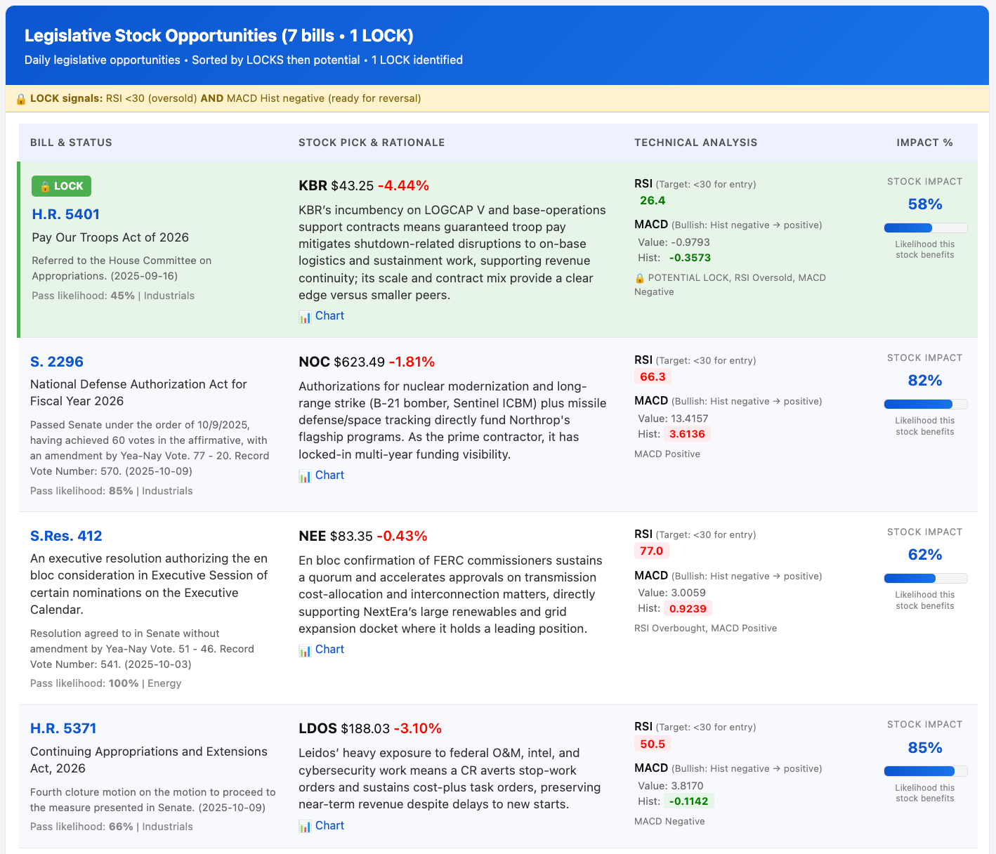 Your daily report highlights how pending legislation could impact specific stocks. Here’s how to understand and spot the key signals, especially LOCKS.